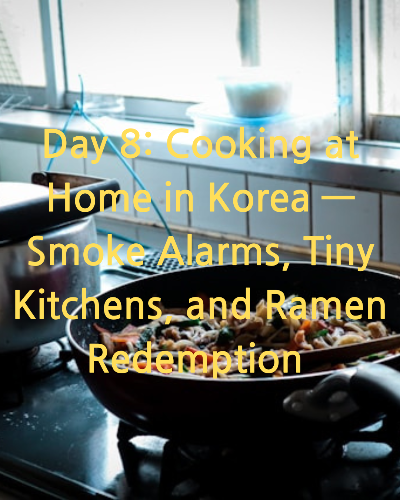 Day 8: Cooking at Home in Korea — Smoke Alarms, Tiny Kitchens, and Ramen🍜 Redemption