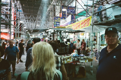 - *People*. Lots of people. Bargaining. Laughing. Eating.